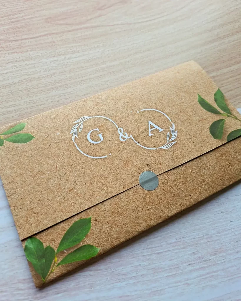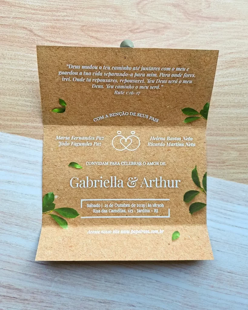 Convite ideal para casamentos, noivados ou aniversário em geral. Feito no papel com impressão imitando kraft e textos em branco.